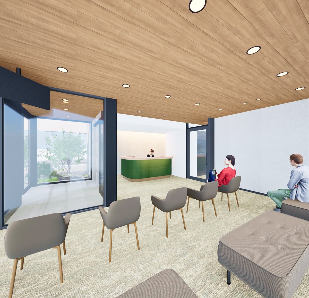 建物はニュートラルでフラット、そしてスタイリッシュな印象を大切にし、患者さまの緊張をやわらげ、心がふくらむ穏やかな空間をお届けします。